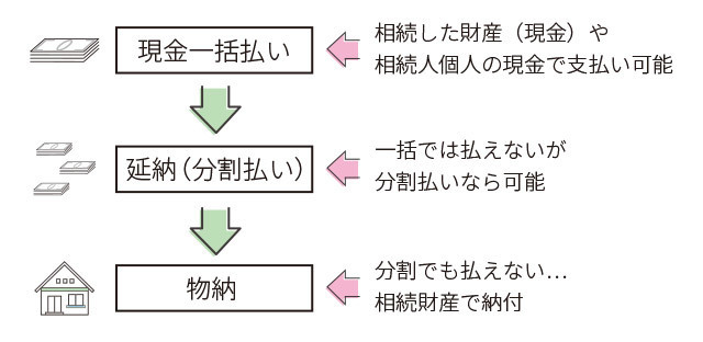 それでは、実際に相続税の現金での支払いが困難な場合の対処方法について見ていきましょう。