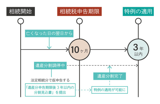 対応策として、仮申告の際に「申告期限後3年以内の分割見込書」を添付して一緒に提出します。